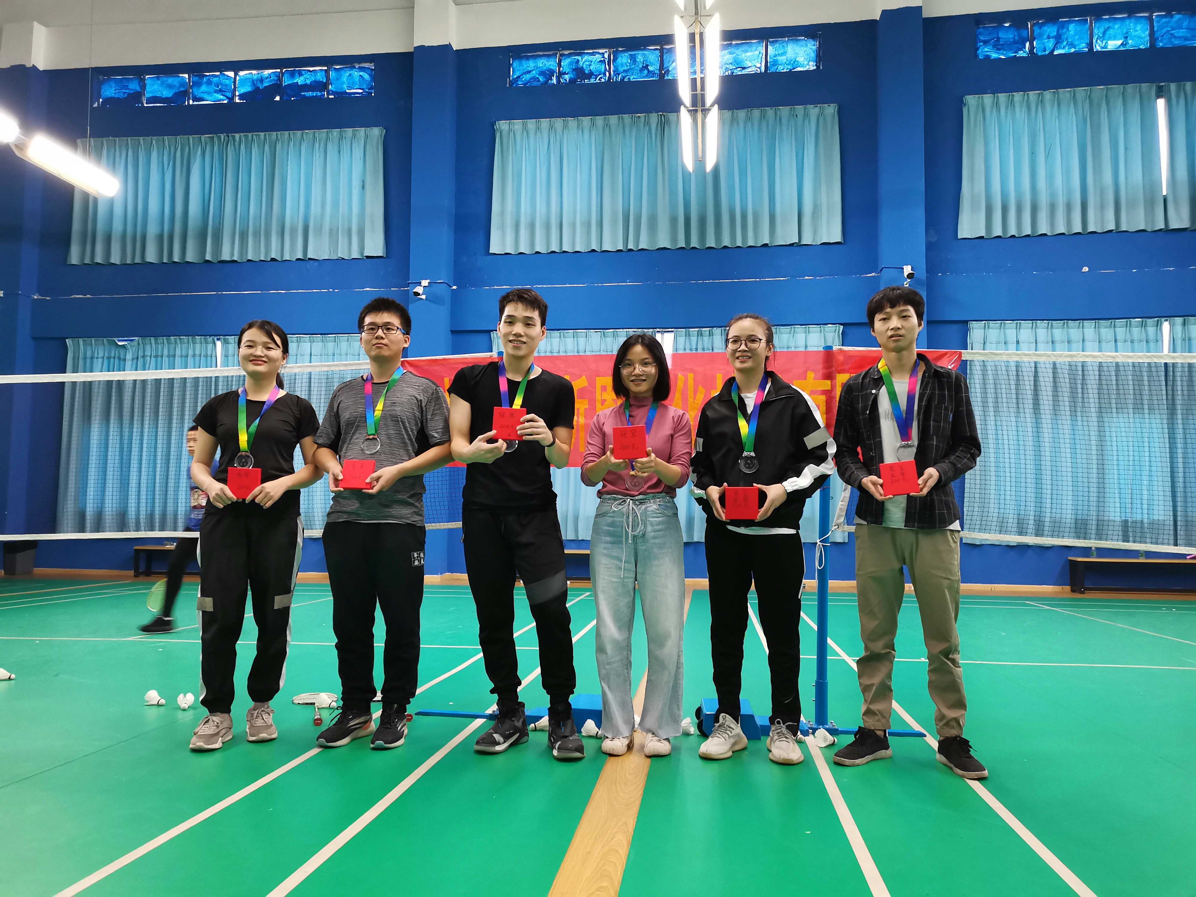 經(jīng)過3個(gè)多小時(shí)的激烈角逐,首屆羽毛球大賽前“三甲”最終產(chǎn)生。冠軍被蔡曉濱、余燕媚摘取,亞軍由甘愛華、吳枝璋、季軍余金坡、竇木秀獲得。此時(shí)此刻,獎(jiǎng)杯在手,他們就是最大贏家。