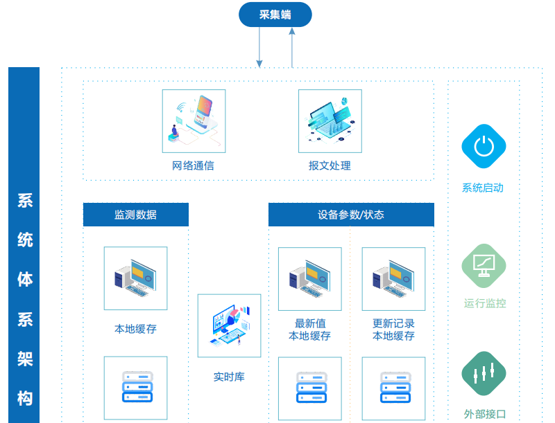 04 外部接口:提供本系統(tǒng)與外界的交互訪問,按照業(yè)務(wù)需求,目前此接口需要提供遠(yuǎn)程設(shè)備控制功能。實時庫:將基礎(chǔ)信息(如站點、監(jiān)測項、設(shè)備參數(shù)項等)常駐內(nèi)存,供各業(yè)務(wù)層子系統(tǒng)使用。